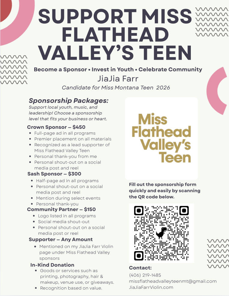 Thank you for your interest in supporting me as Miss Flathead Valley’s Teen 2026. Your generosity helps me serve my community through Play It Forward, my music-based kindness initiative. With your help, I can continue visiting schools, hospitals, assisted living facilities, and community events across the Flathead Valley